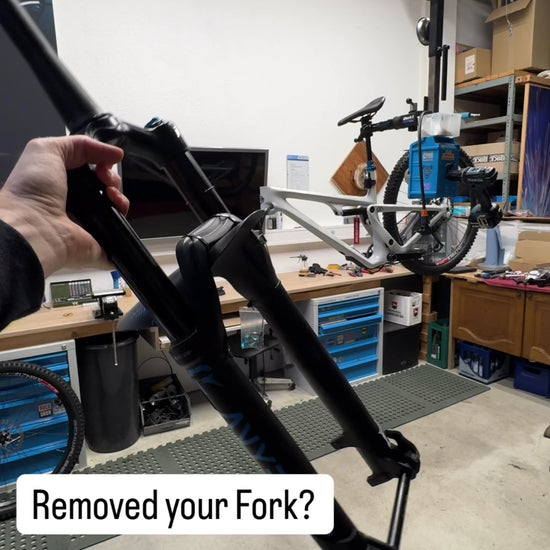 Damit kann das Bike auch am Hinterrad aufgehängt oder sicher im Montageständer fixiert werden, während die Gabel im Service ist.